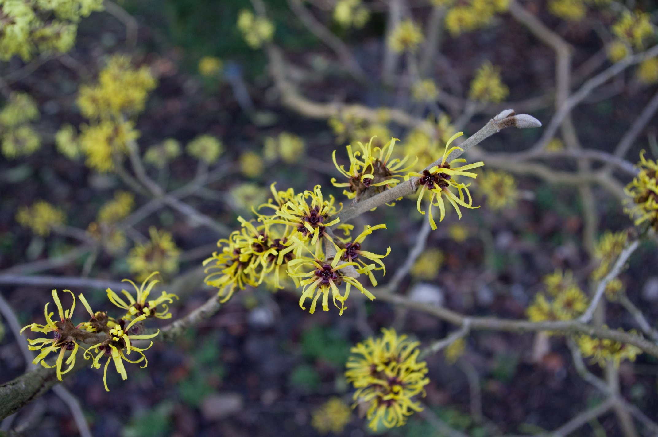 The Witch Hazels are in the Collections Garden, between the car park and the tennis courts.